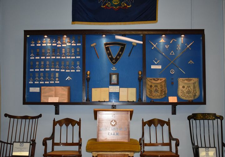 Masonic items and artifacts are an important part of many lodges’ history and can contribute to the aesthetic environment of a lodge building – like this display from Bristol Lodge No. 25! Bristol Lodge is the last Moon Lodge in the 8th Masonic District.